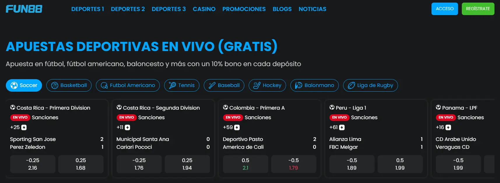 En México, el fútbol no es un juego, es una religión. Por ello, el corazón de Fun88 sport betting late al ritmo del balompié. Ofrecemos una profundidad de mercado inigualable, permitiendo a los usuarios de Fun888 méxico apostar no solo al ganador, sino a córners, tarjetas, hándicaps asiáticos y actuaciones individuales de jugadores.
